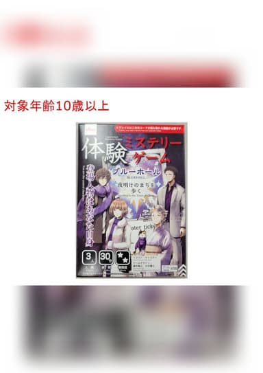 「ブルーホール」という架空の国の旅行記を執筆している作家のサトウテンさんとコラボして制作されたシナリオです。全国のDAISO(ダイソー)で購入できます。初心者でも体験しやすい難易度となっているため、マダミスの布教にもオススメです。