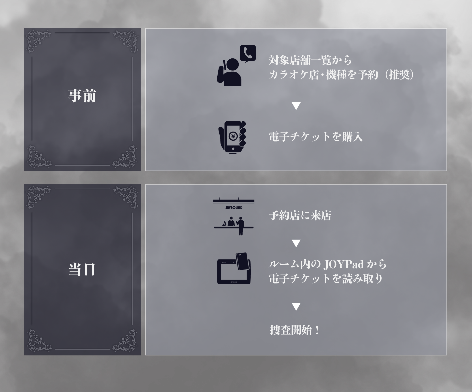 声優の安野希世乃さん、佐倉薫さんが演じる合同捜査チームと共に、覚醒剤密売事件の捜査中に起きた連続殺人事件の真相に迫り、カラオケルームの臨場感あふれる空間で物語を体感しながら、スマートフォンを使って情報を集め、自らの手で謎を解き明かしていきます。