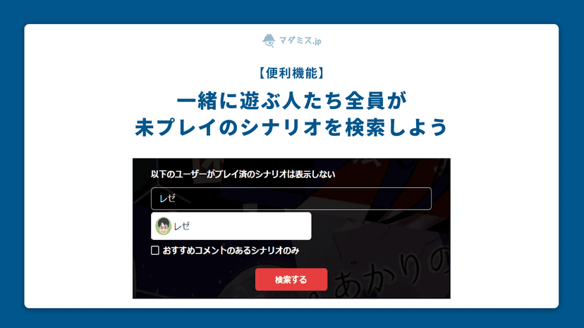 マダミスを始めたばかりで、TwitterやDiscordなどオープンな場で募集をするのが不安、一緒に遊ぶ知り合いがいないという方でも簡単にメンバーを募集できて安心です。