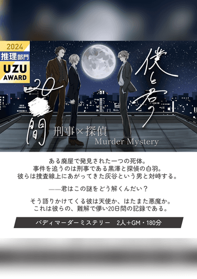 人間はいとも簡単に重要な何かを見逃し、思い込んでは錯覚する。誰もが持つその性質を利用して、見る者を欺き、不可能を可能にするエンターテインメント――我々は、それを奇術(マジック)と呼ぶ。某日某所、人里離れた小高い丘の上に建つ幻想邸(げんそうてい)と呼ばれる邸宅で、奇術師たちの会合が行われていた。主催者は千の奇術師、司丹神朔夜(しにがみさくや)。カードにコイン、カップはもちろんのこと、大規模な消失マジックや脱出イリュージョンまで、彼にできない奇術はないと言われるほどの人物である。新ネタの開発頻度やトリックの斬新さも高く評価されており、彼が開く会合には毎年多くの奇術愛好家が詰めかける。だが彼には一つ、巷(ちまた)で囁かれている重大な噂があった。「司丹神の周りでは人が消える」と。知る人ぞ知るそのフレーズは参加者に一抹の不安を与えながらも、ある意味で彼のミステリアスな魅力を増幅させる一助(いちじょ)となっていた。此度(こたび)集った者たちには、噂に関することか、あるいは別のことか、それぞれ彼への思いや目的があると見える。互いに多くは語らぬまま、表面上はマジックショーや奇術談議で賑わっていた邸宅の一室にて、息絶えた男性が発見される。それは、他でもない司丹神朔夜の死体であった。自らを隠し、相手を欺け。そして、種とともに鼻を明かせ。奇術師たちのミステリー、ここに開幕。