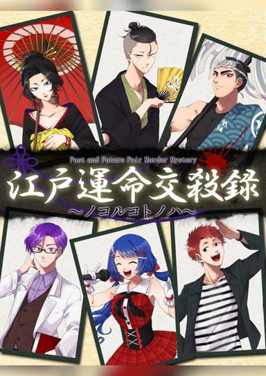 🎴あらすじ🎴ようこそお越しくださいました。本日はこんなお話を一席。時は江戸。史上2番目に⻑く続いた時代のお話でございやす。とある⻑屋に3人の若者がおりました。「火消」「賭博師」「和妻師」喧嘩もしながら、これも犬猿の仲ってことでよろしく過ごしていた時でございやす。ある朝目覚めますと、外が騒がしい。「なんだ、なんだ」ってんで、見に行ってみやすと、そこにはちんちくりんな格好をした若者が3人。それぞれ「けんきゅうしゃ」「げいにん」「あいどる」などと、申す身分のもののようでございまして。「今は何年だ?」なんてことを聞きますもんで、「なんだい、そりゃ時そばかい?」なんて冗談混じりに言ってみますが、どうやら本気のようで。「ああ、今は江戸の時分だよ」なんて言ってみますれば、「たいむすりっぷか?」などと訳の分からないことを言っているじゃないですか。話を聞いてみますと「未来」から来たと。どうにか帰る方法が見つかるまで、⻑屋の若者3人が預かることにしたのでありました!数日後、悲劇は起きてしまうのであります。朝目覚めると、若者たちが住む⻑屋の大家の死体が発見されたからさあ大変。若者たちの運命が交差し、動きだしたようで。まあだあみすてりぃ「江戸運命交殺録∼ノコルコトノハ∼」はじまりはじまりぃ。
